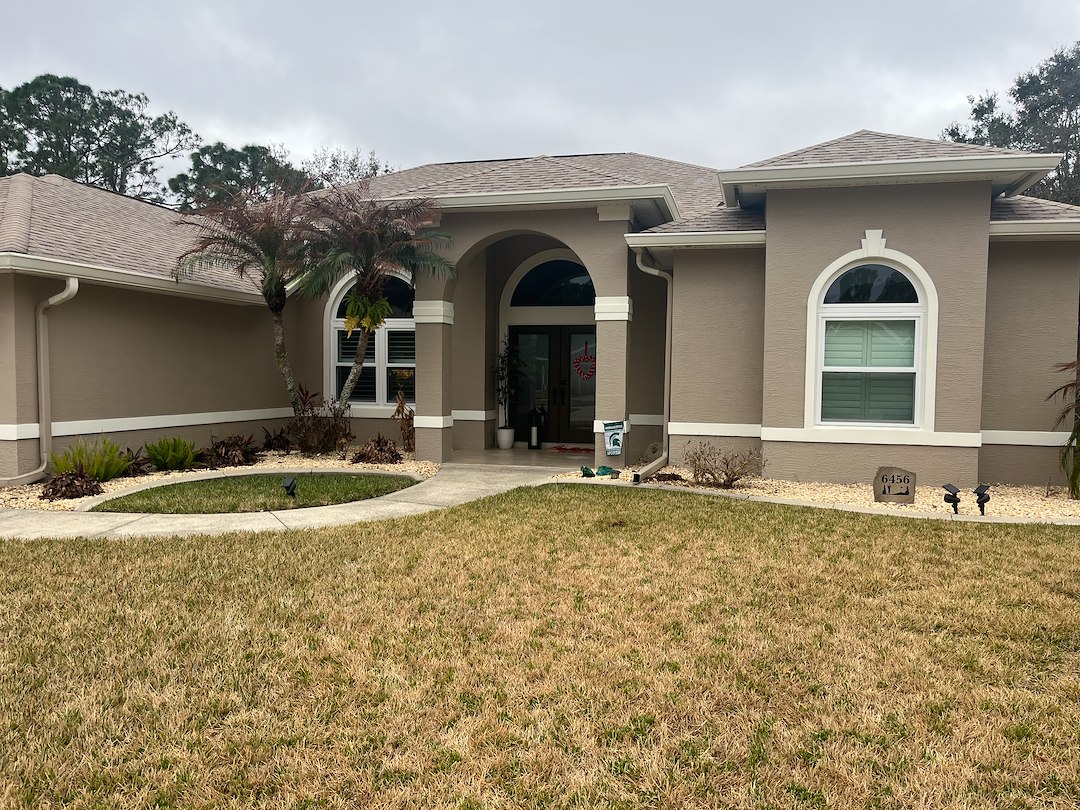 We just completed an exterior house painting project int the Cypress Head community of Port Orange, Florida, where the homeowners wanted to refresh their home while mostly keeping its original color scheme. The existing paint had begun to fade, and there were several areas of stucco damage that needed attention, so we handled all necessary stucco repairs before priming, sealing, and applying a two coats of high-quality Sherwin Williams exterior coating to ensure a smooth, long-lasting finish. The clients chose to keep the main body color the same but updated the front door and garage doors to match those of another home in the area that they admired. The subtle change gave the house a clean, cohesive look while maintaining its original character. The final result was a sharp, well-maintained exterior that boosted curb appeal and left the homeowners extremely happy with the transformation.