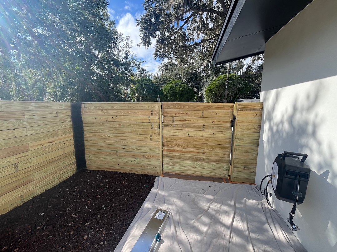 We just wrapped up this fence staining project in New Smyrna Beach, Florida for a brand new home build, applying a rich black stain to compliment the home's modern farmhouse look. The fence was professionally prepped and evenly stained, providing long-lasting protection against the elements. The bold finish adds a clean, contemporary contrast that ties in perfectly with the home's exterior and overall aesthetic. The end result is a sleek, durable fence that elevates curb appeal and completes the polished look of this new construction.